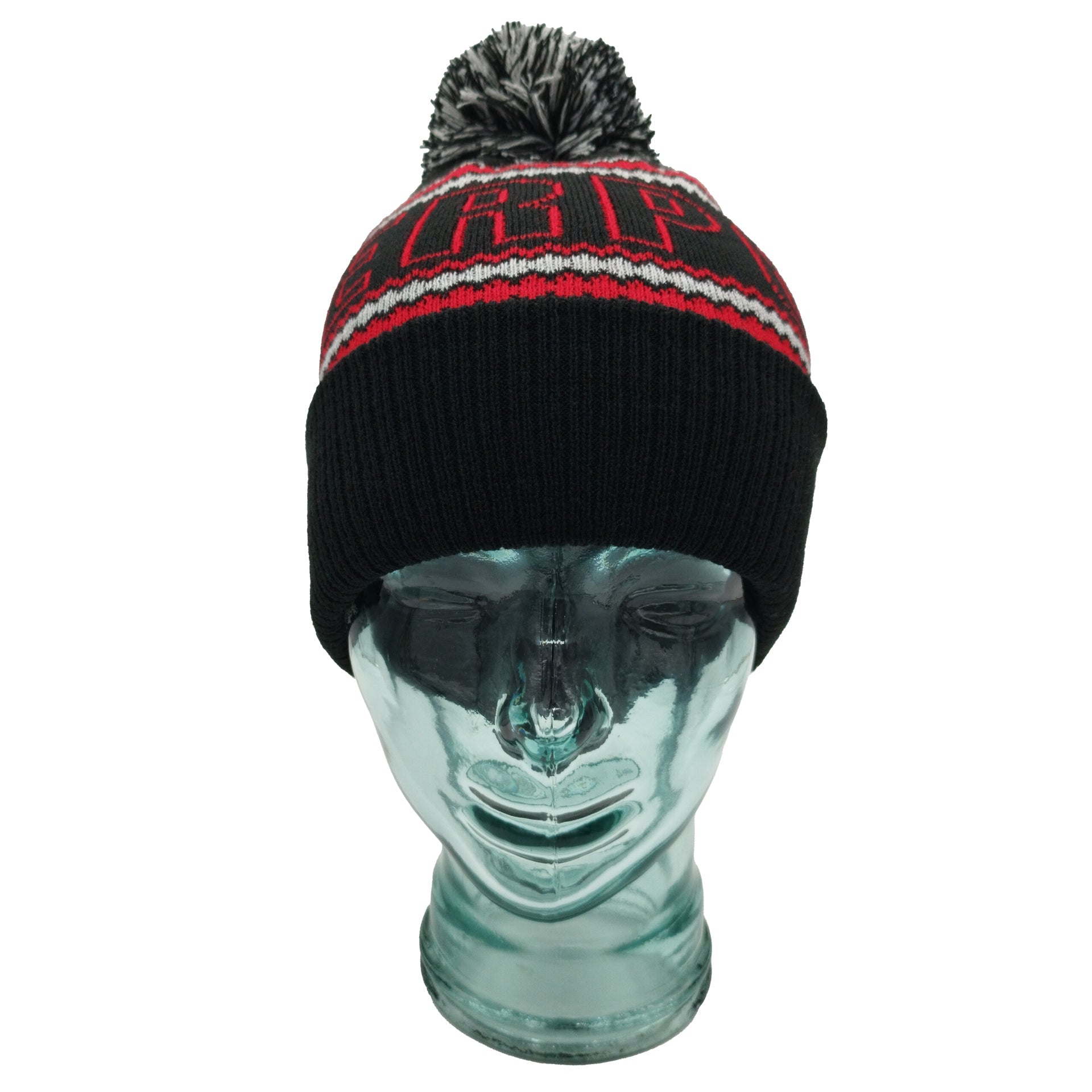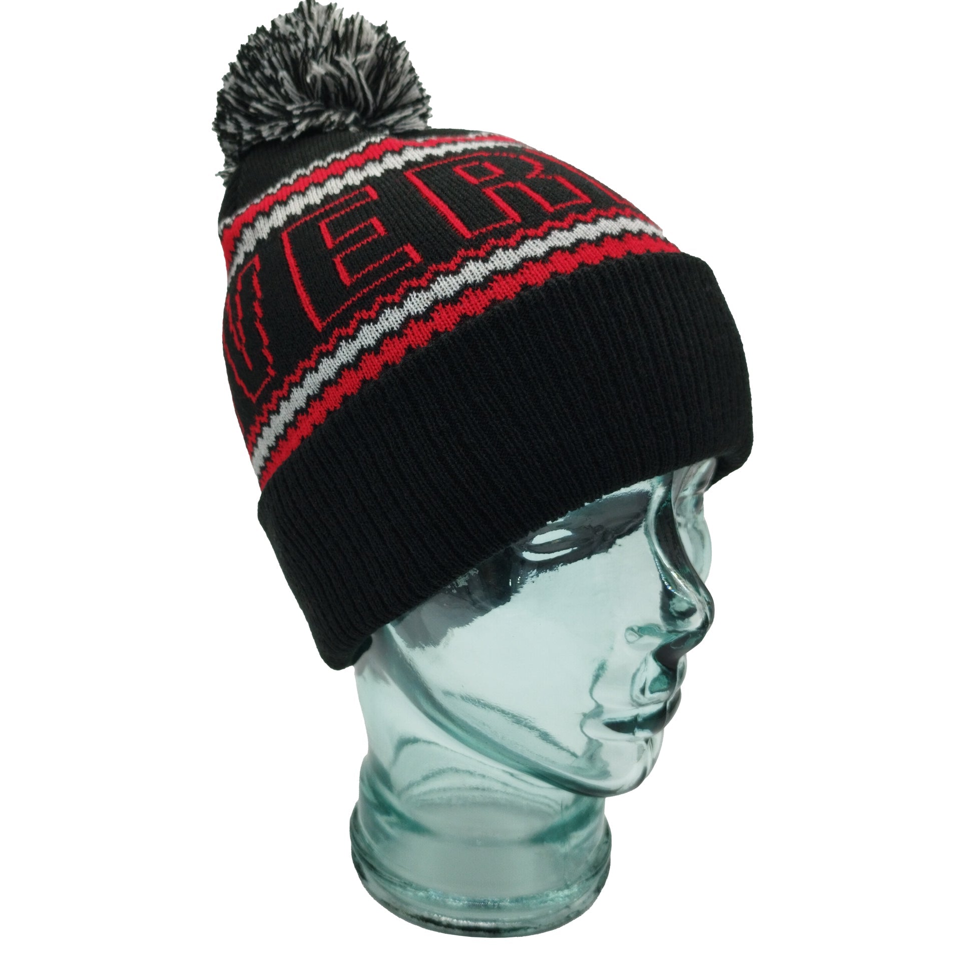 Black, Red & Grey Liverpool Outline Bobble Hat Ribbed Cuff