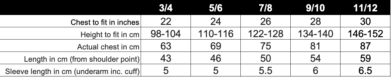 • Sizes: 3/4, 5/6, 7/8, 9/10, 11/12