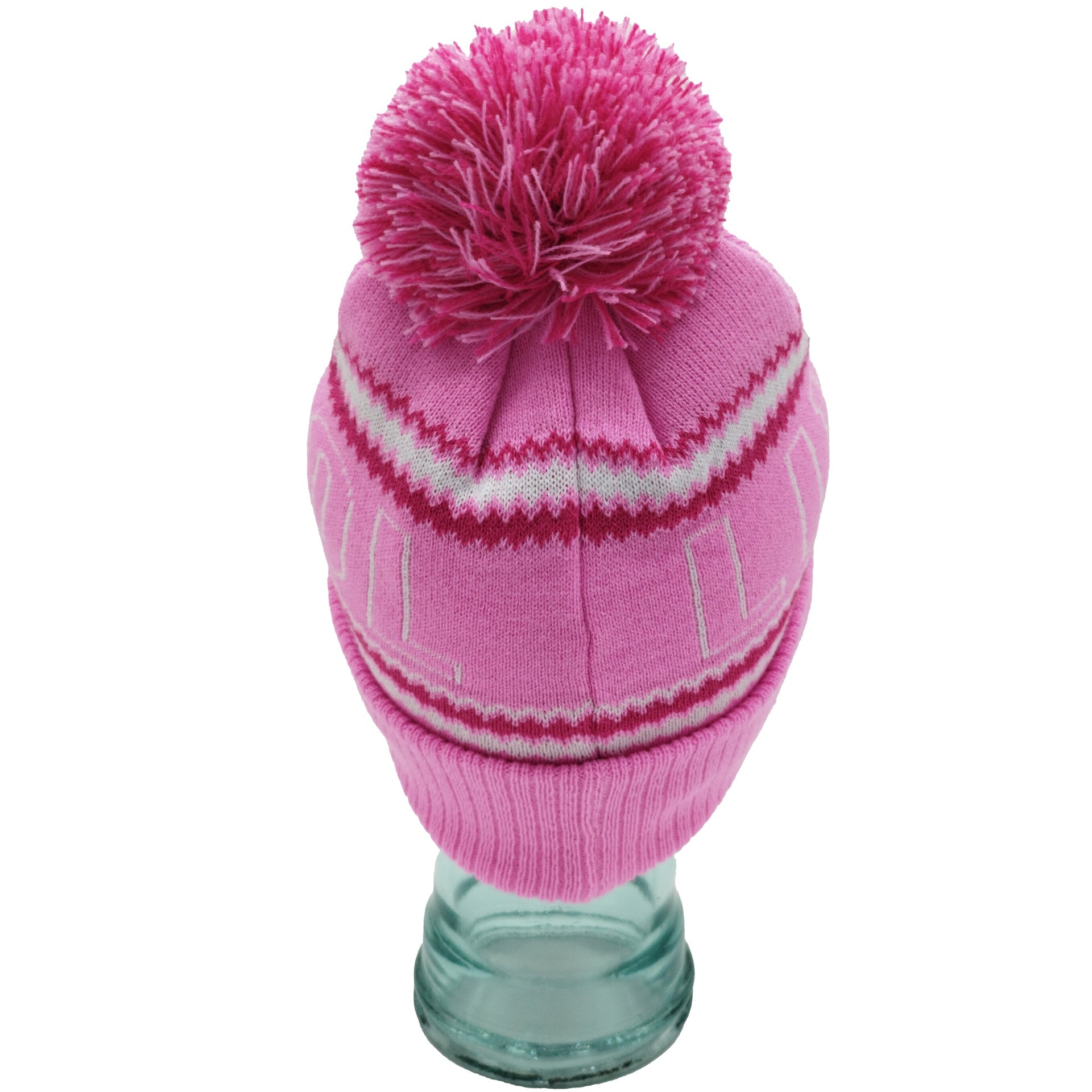 Pink, White & Magenta Liverpool Outline Bobble Hat Ribbed Cuff