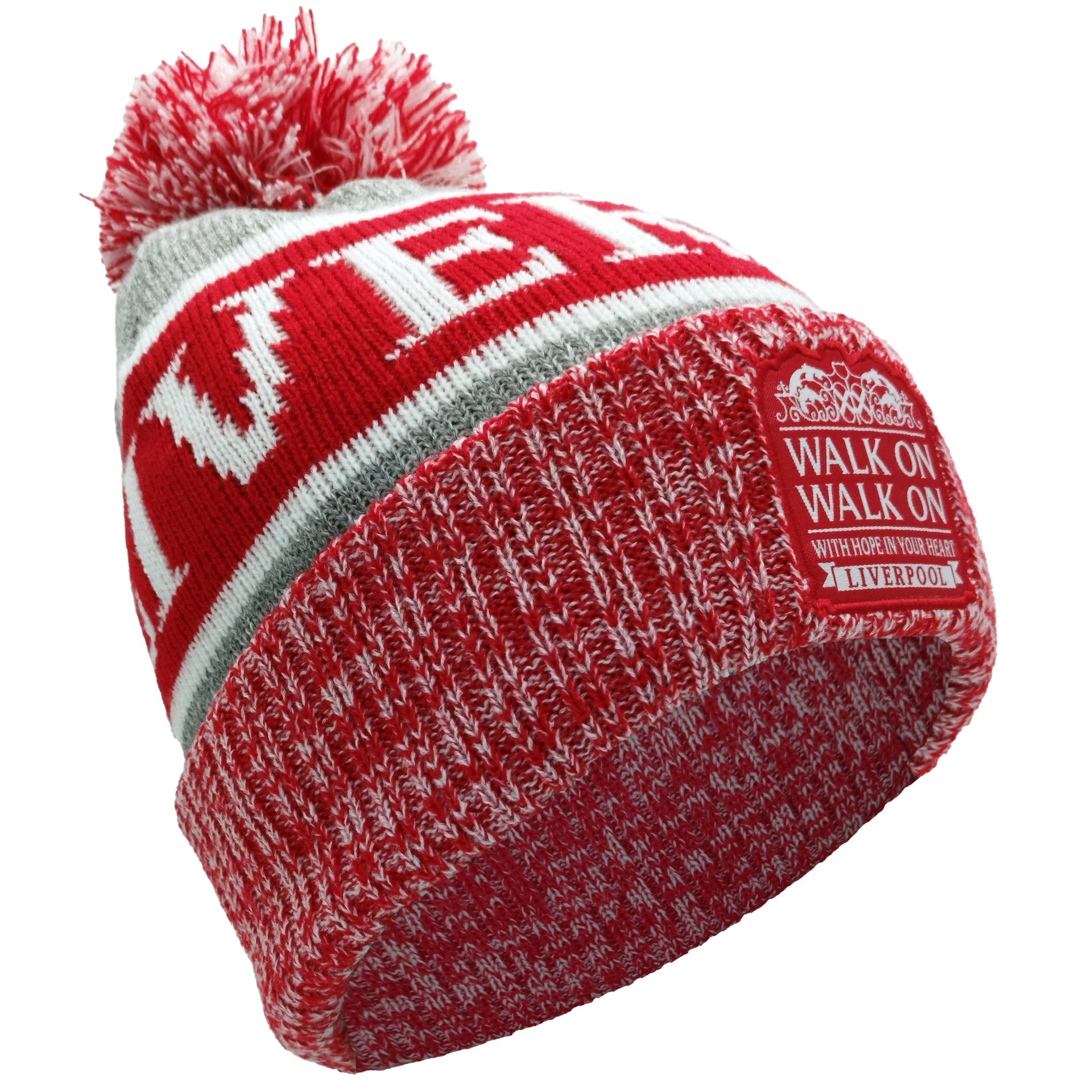 Liverpool Bobble Hat Red, White & Grey Patch Logo