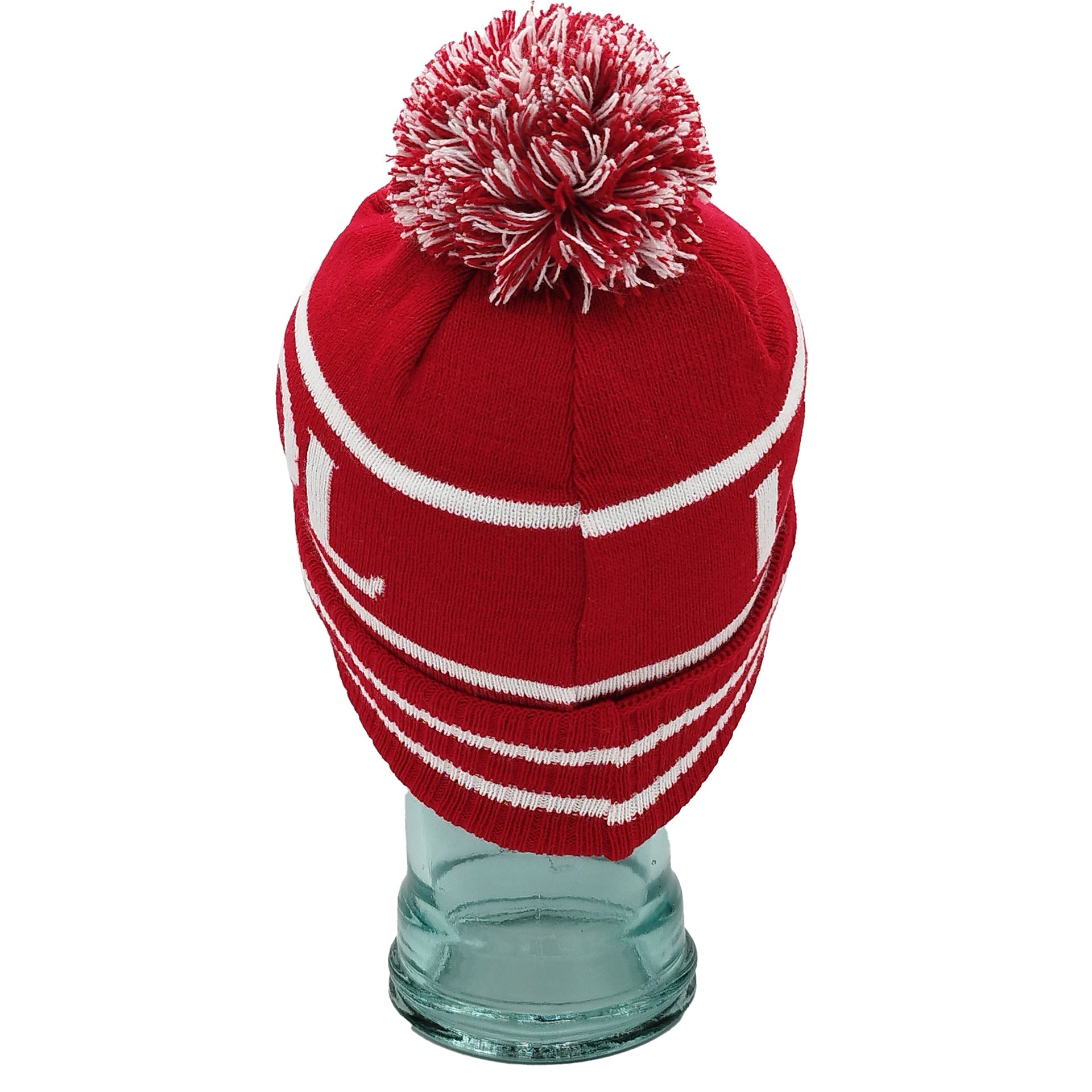 Red & White Liverpool Bobble Hat Ribbed Cuff